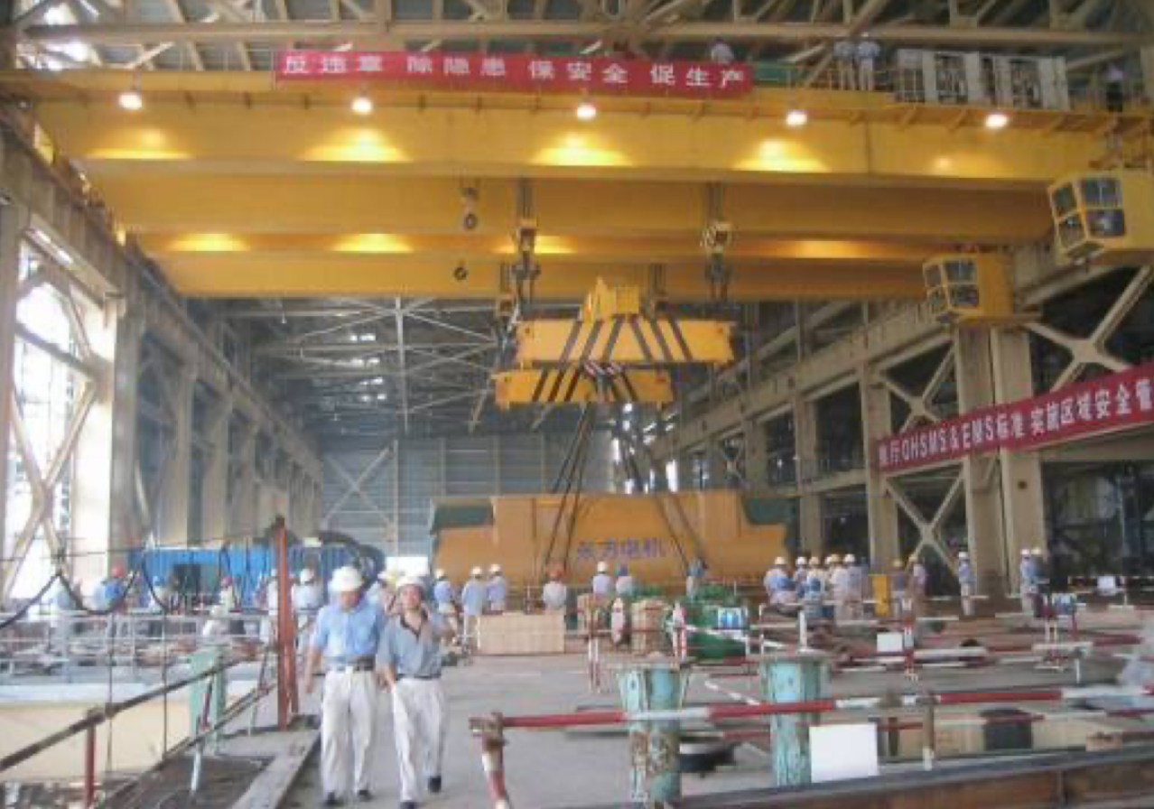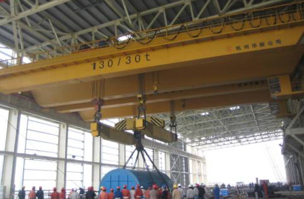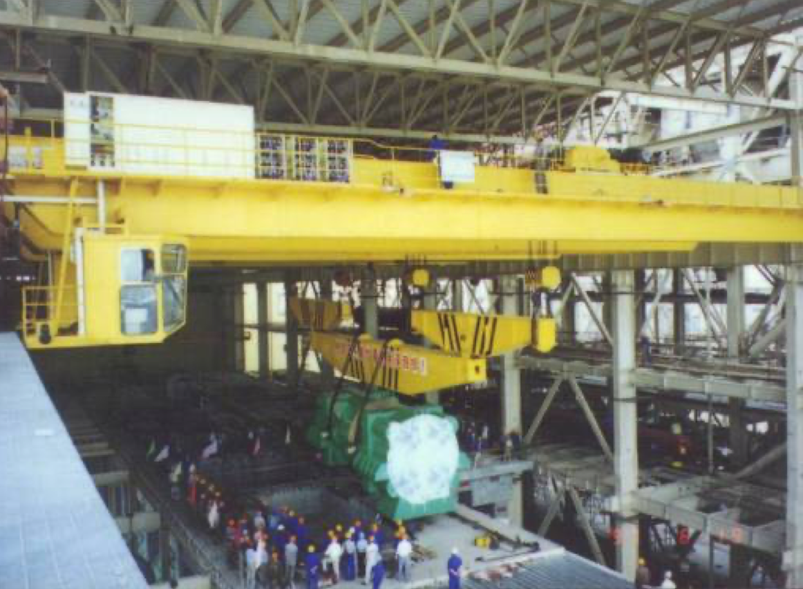公司設(shè)計(jì)制造的所有橋機(jī)及門(mén)機(jī)的起升小車(chē)系消化吸收國(guó)外先進(jìn)技術(shù),結(jié)合我國(guó)當(dāng)時(shí)的配套水平,綜合研究院多年的技術(shù)研制經(jīng)驗(yàn),遵照GB/T3811-2008《起重機(jī)設(shè)計(jì)規(guī)范》、GB/T14405-2011《通用橋式起重機(jī)》等標(biāo)準(zhǔn),同時(shí)參照國(guó)外有關(guān)起重機(jī)標(biāo)準(zhǔn)及歐洲搬運(yùn)協(xié)會(huì)主流橋式起重機(jī)機(jī)型研制而成,節(jié)能減排,經(jīng)濟(jì)環(huán)保,特別適合地下廠房、新型工廠及大噸位貴重物件的吊裝、搬運(yùn)就位工作。公司首臺(tái)臺(tái)橋機(jī)為1990年研發(fā)、1992年投入生產(chǎn)的寧波北侖電廠80/20t橋式起重機(jī),公司首臺(tái)臺(tái)門(mén)機(jī)為1994年向富春江發(fā)電廠提供的2×20t尾水門(mén)機(jī)。近三十年的發(fā)展,已向國(guó)內(nèi)外眾多優(yōu)質(zhì)客戶提供千余臺(tái)橋機(jī)和門(mén)機(jī)設(shè)備,是目前業(yè)內(nèi)最先進(jìn)、最成熟的低凈空小車(chē)結(jié)構(gòu)。目前制造過(guò)的單小車(chē)橋機(jī)最大額定起重量為800t,雙小車(chē)橋機(jī)最大額定起重量為500t+500t,具備1500噸橋機(jī)的設(shè)計(jì)制造能力;制造過(guò)的門(mén)式起重機(jī)最大額定起重量為900t的造船龍門(mén)吊。